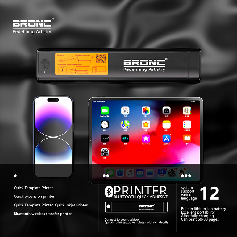 Термокопировальный беспроводной принтер BRONC Inkless Thermal Tattoo Printer