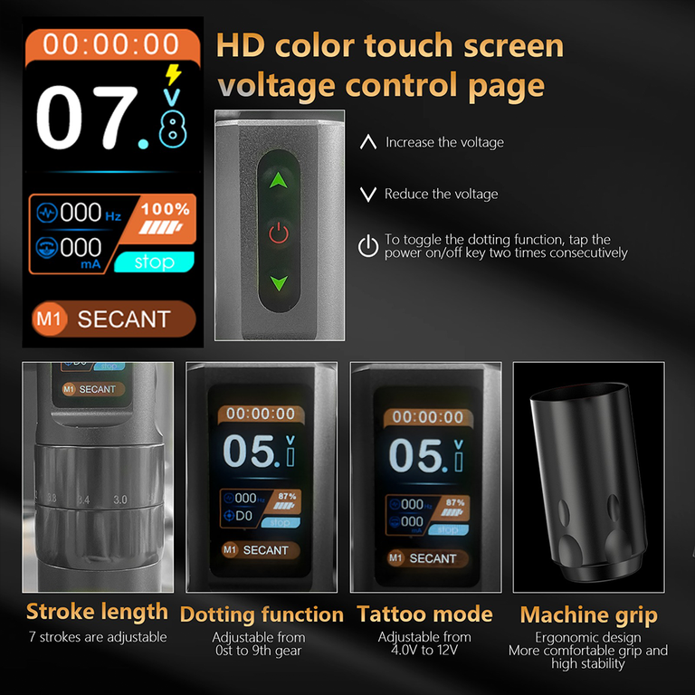 Беспроводная тату машинка BRONC V80 Strokes 2.0 - 4.2mm X 2Power Black