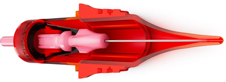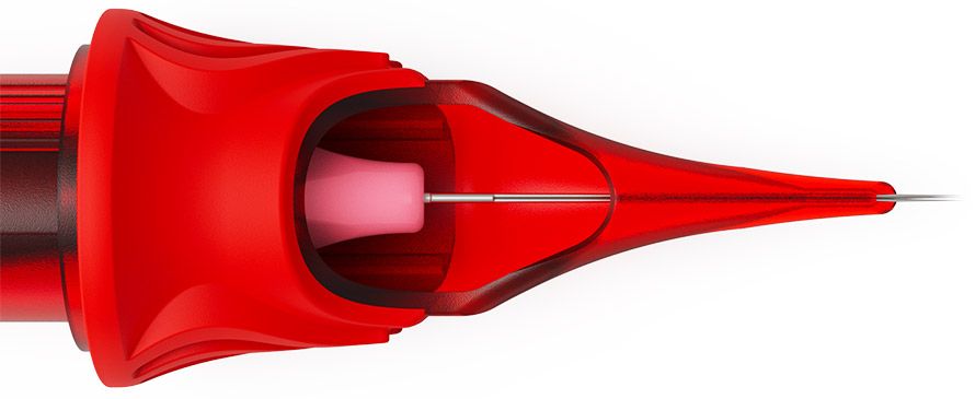 Эргономичный картридж добавляет эффект тактильного отклика, давая возможность мастеру натуральнее «ощущать» татуируемую кожу концами игл.