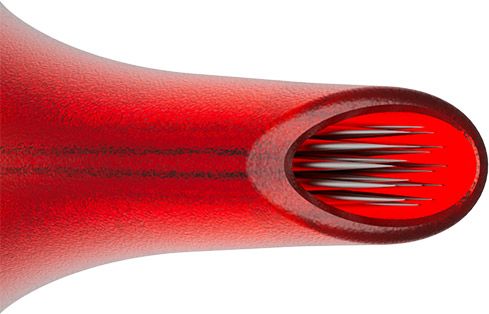Для каждой группы игл рассчитан индивидуальный внутренний диаметр наконечника. Это позволяет повысить точность удара игл, сохраняя в канале наконечника оптимальное пространство для равномерного потока чернил.
