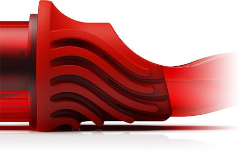 Демпфирующий рельеф на поверхности насадки смягчает давление указательного пальца при нажиме. Эргономичная форма насадки дает возможность татуировщику прикладывать меньше усилий для удержания тату машинки в руке. Создавая эффект «отзывчивого инструмента», машина с картриджем CARTEL ощущается как продолжение руки.
