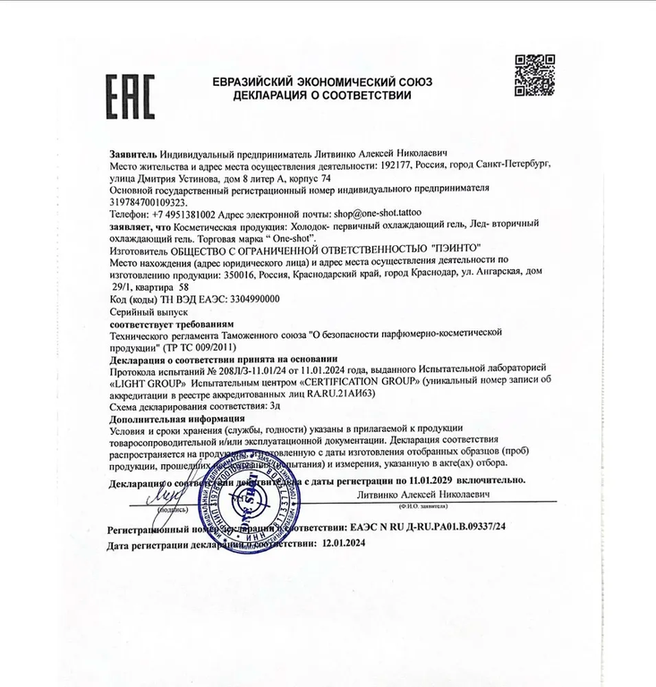 • Производство: One Shot Tattoo (Россия).