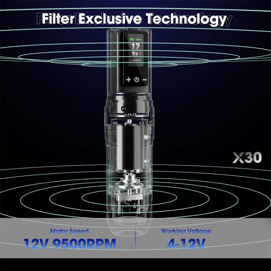 Беспроводная тату машинка EZ Filter X30 Strokes 2.0-4.0mm Black
