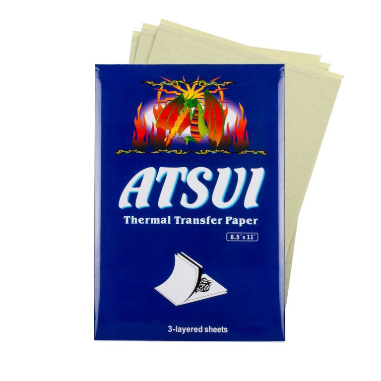 Трансферная бумага ATSUI. 4-х слойная трансферная бумага для переноса рисунка на кожу. Можно использовать как в работе с термопринтером, так и для ручного переноса. Листы имеют толстый фиолетовый слой. Переводится легко и сохраняется на протяжении всей тату сессии.