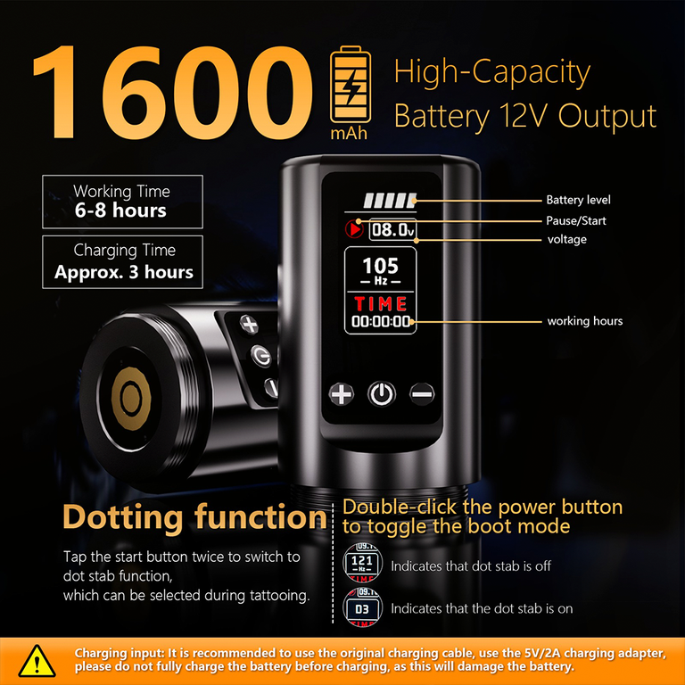 Беспроводная тату машинка BRONC V77 Strokes 2.0 - 4.2mm X 2Power Black